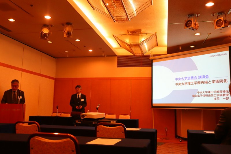 庄司先生からは、理工学部の再編計画や学術院化の具体的な方向性、教育・研究の将来像についてご丁寧にご説明いただき、参加者にとって中央大学の新たな挑戦を知る貴重な機会となりました。